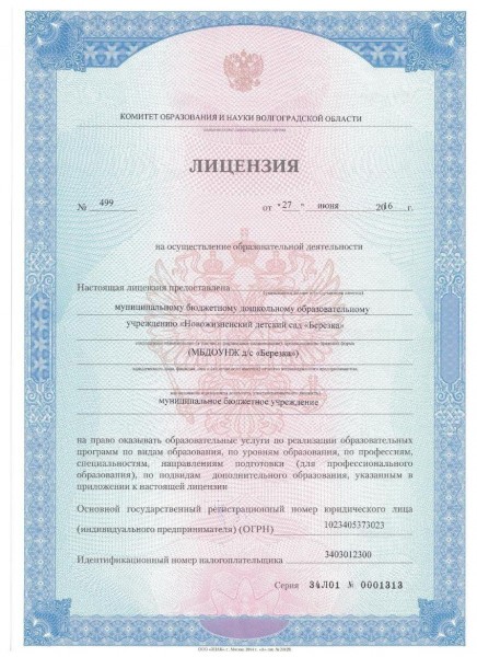 | Полное наименование образовательной организации* | Муниципальное бюджетное дошкольное образовательное учреждение «Новожизненский детский сад «Березка» |