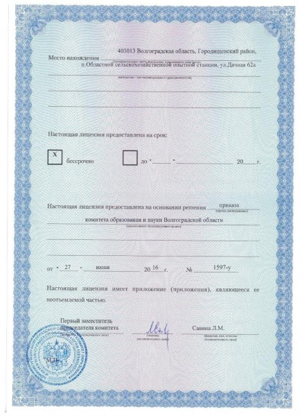 - Места осуществления образовательной деятельности при использовании сетевой формы реализации образовательных программ: п.Областной с/х опытной станции, ул.Дачная 62а.